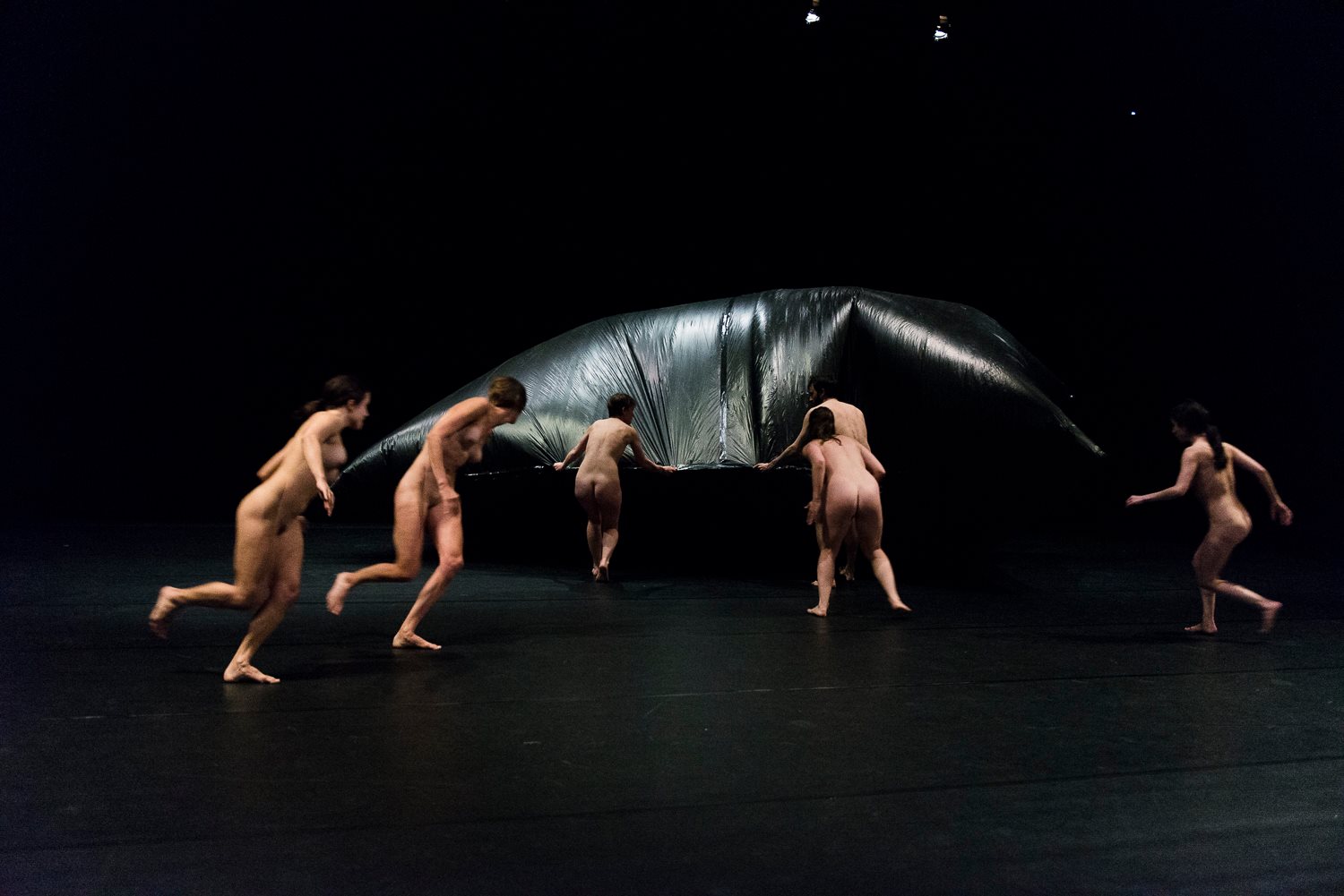 Wreck. List of Extinct Species es un ejercicio interdisciplinario que incorpora el movimiento, el sonido y las artes visuales. La fuerza del aire provoca que un gran plástico negro, una escultura blanda, se mueva en el espacio como un cazador. Este objeto abstracto, con un gran poder evocador, traga y escupe seres humanos, cuerpos desnudos. Podríamos considerarlo una alegoría del Leviatán, un monstruo legendario submarino, una metáfora del capitalismo o de las mismas condiciones humanas.
