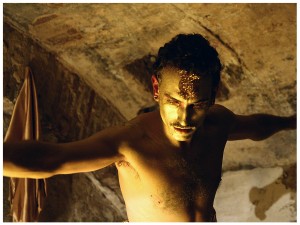 A partir del minuto 00:17:33, cuando el ángel desciendo de las puertas del cielo en la Magrana hacia la Vírgen María.