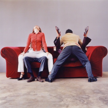 us modelos posturas pornográficas propias de actores del género, con la salvedad de que sus modelos están totalmente vestidos lo que cambiar radicalmente la lectura que hacemos de esas imágenes, convertidas ahora en algo chocante, irónico, y en las que el sexo se ha convertido en algo puramente escenográfico y en las que, paradójicamente, el propio objeto de la imagen, el sexo, ha desaparecido. » (http://lavidanoimitaalarte.blogspot.com)
