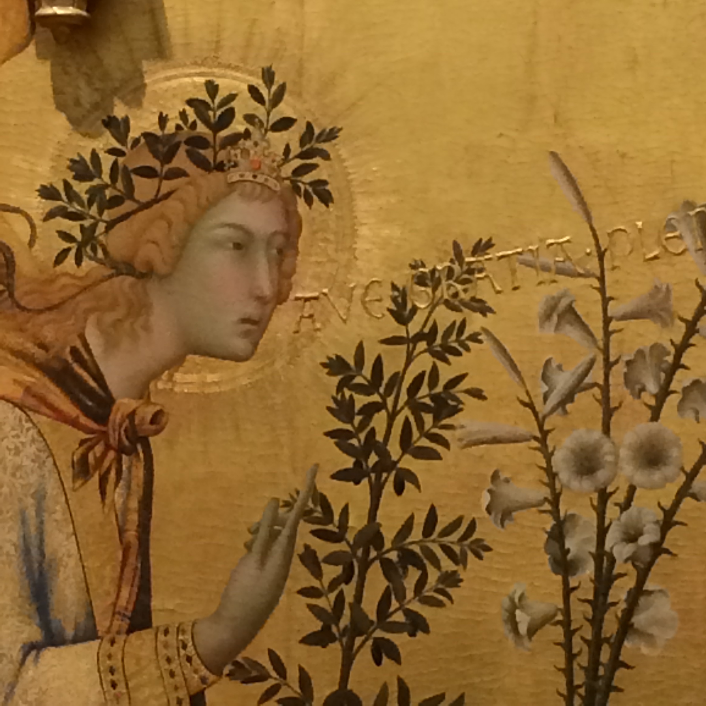 Angel desconfiado que odia a la Virgen a la que viene a adorar.