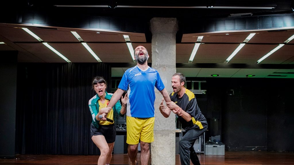 MJ: En las últimas obras que he hecho más bien he tendido a pensar en que se pudieran hacer en cualquier lugar. Yabba se estrena en un polideportivo, pero se puede hacer como se hizo en un museo, en una nave industrial… la idea es que Yabba aterriza donde puede. The Stain también tiene ganas de ser algo así, que se pueda hacer en una galería o en otros espacios.