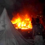 Secuencia crematoria del bacilö MADcar. Para la realización de esta secuencia se han utilizado fotos rescatadas/obtenidas de internet (imágenes de lo acontecido aparecieron p.ej. en yonkis.com) o de compañeros como DSEX3ate. Lamentablemente, a esas horas nuestros agentes tenían todas las tarjetas de memoria llenas y escasas baterías en sus cámaras, debido a la ingente labor de campo desplegada durante los dos días, y recurrieron a los presentes circundantes y/o amigos. Por desgracia nuestro  prototipo carecía de material aislante-ignífugo… A lo mejor a los Prodigy les interesa para su gira.