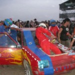 Los asistentes emulando-exagerando la acción de bacilö, salvo en el hecho de que el coche no era suyo y carecían de un plan-ANTEproyecto y de convenio con la organización. Nosotros somos profesionales de la agitación mental y el Salvajismo NO Domesticado.