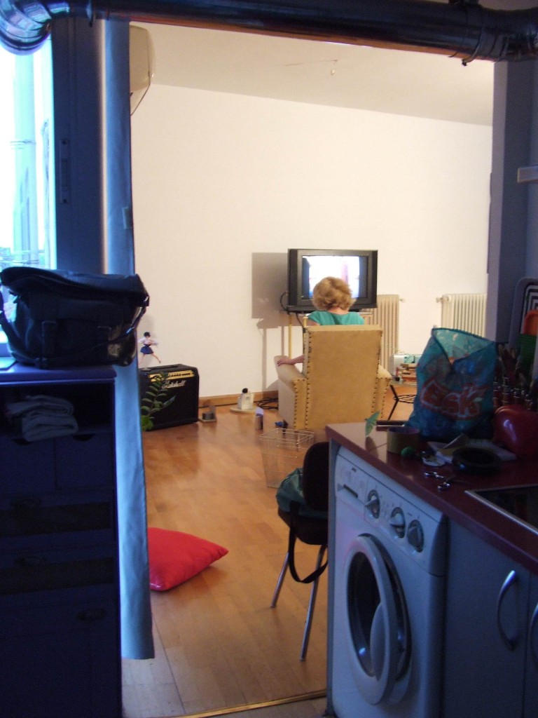 así de bonito quedó «El caso del espectador» de maría jerez en nuestro salón dentro del living room festival. para mi fue super emocionante ver en mi casa esa pieza que me encanta y que me sé de memoria porque he sido su técnica en varios lugares del mundo. también influye que se estrenó a la vez que mi primer solo cUADRADO_fLECHA_pERSONA qUE cORRE y maría y yo estuvimos ensayando pared con pared durante meses…ay… tiempos aquellos en los que existía el aula de danza de alcalá de henares…