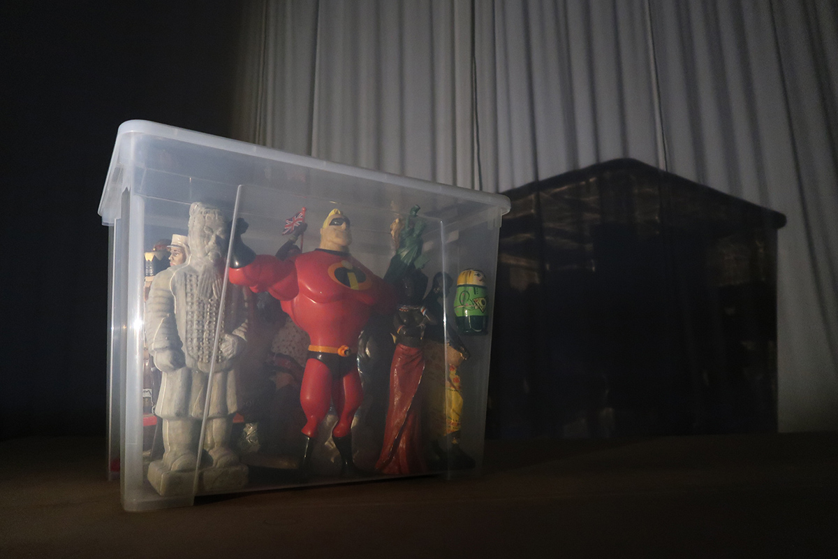 Este lúcido creador de apellido común con el filósofo racionalista del siglo XVII, propone en UHU su particular interpretación crítica de la Historia en formato escénico. El guión se alimenta de la experimentación con el objeto como elemento narrativo; Espinosa genera un recorrido visual por los principales acontecimientos de la Historia de la Humanidad. El kitsch, siempre presente en su obra gracias a esos objetos a los que transfigura en escena, resaltan el aspecto grotesco de algunos de los grandes acontecimientos universales. Sus trabajos están siempre pensados para todo público evitando la figura del artista elitista y subrayando el aspecto lúdico de la experiencia teatral. Con humor, cada una de sus piezas, parte de un proyecto megalómano y grandilocuente representado finalmente de forma artesanal y low tech con miniaturas y maravillosas troballes de mercadillo: Mi gran obra, el tríptico sobre El Quijote, Much ado about nothing, han girado internacionalmente en plataformas como la Tate Modern o la Biennale de Venezia. Un clarísimo representante de la escena contemporánea en nuestro país que finalmente Hiroshima acogerá durante dos temporadas consecutivas.