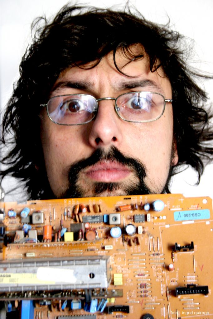 Como compositor realiza piezas a partir de la manipulación y fabricación de dispositivos de sonido tomados de diferentes fuentes y materiales, tanto electrónicos como acústicos.