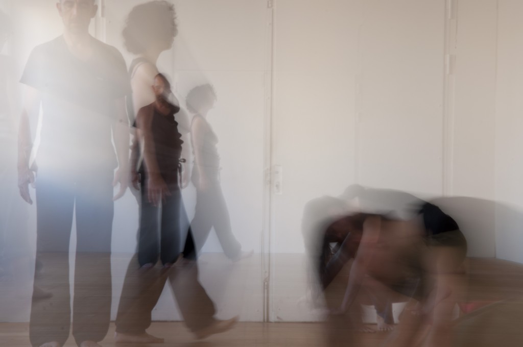 En este recorrido carnal, del suelo, con la cabeza apoyada en la mano, al estar de pie, el cuerpo busca lo esencial, no quedarse en lo que está de más, centrarse en esos centímetro que cada vez son más de la distancia entre la boca y el pubis. Y cuando ya está, y la mano reconoce la pulsión interna de lo que sucede dentro de la piel, vuelve al suelo, a apoyar la cabeza en la mano allí donde la encuentre, sin recolocarse.