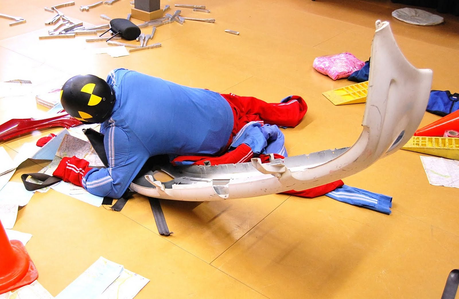 -Oriol llença els conos sobre els airbags per fer-los explotar. Després es llença