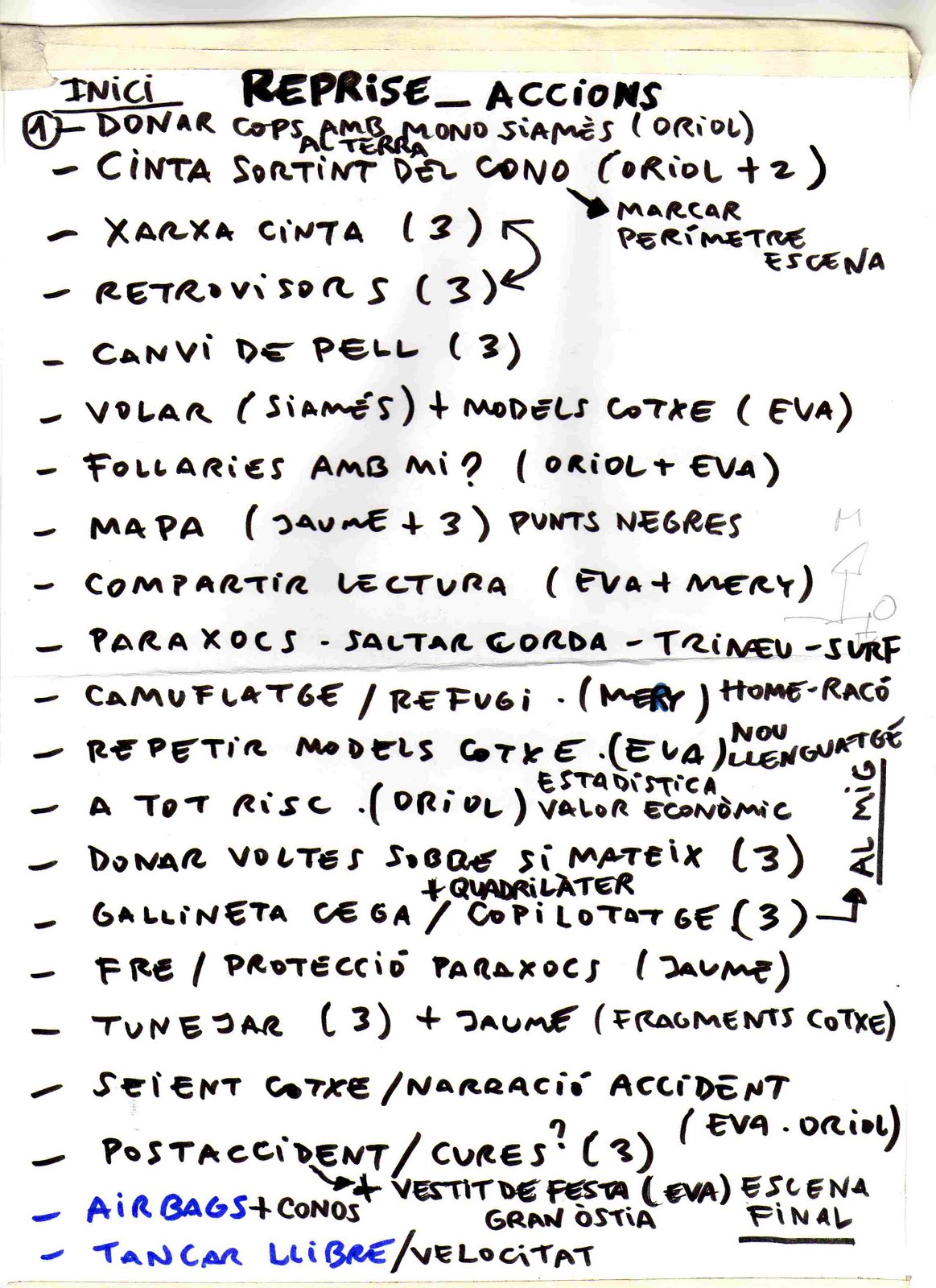 Proposta: treballar els elements/objectes escènics per separat, de forma individual, sense contaminar-los amb la resta. Separar acció/text.