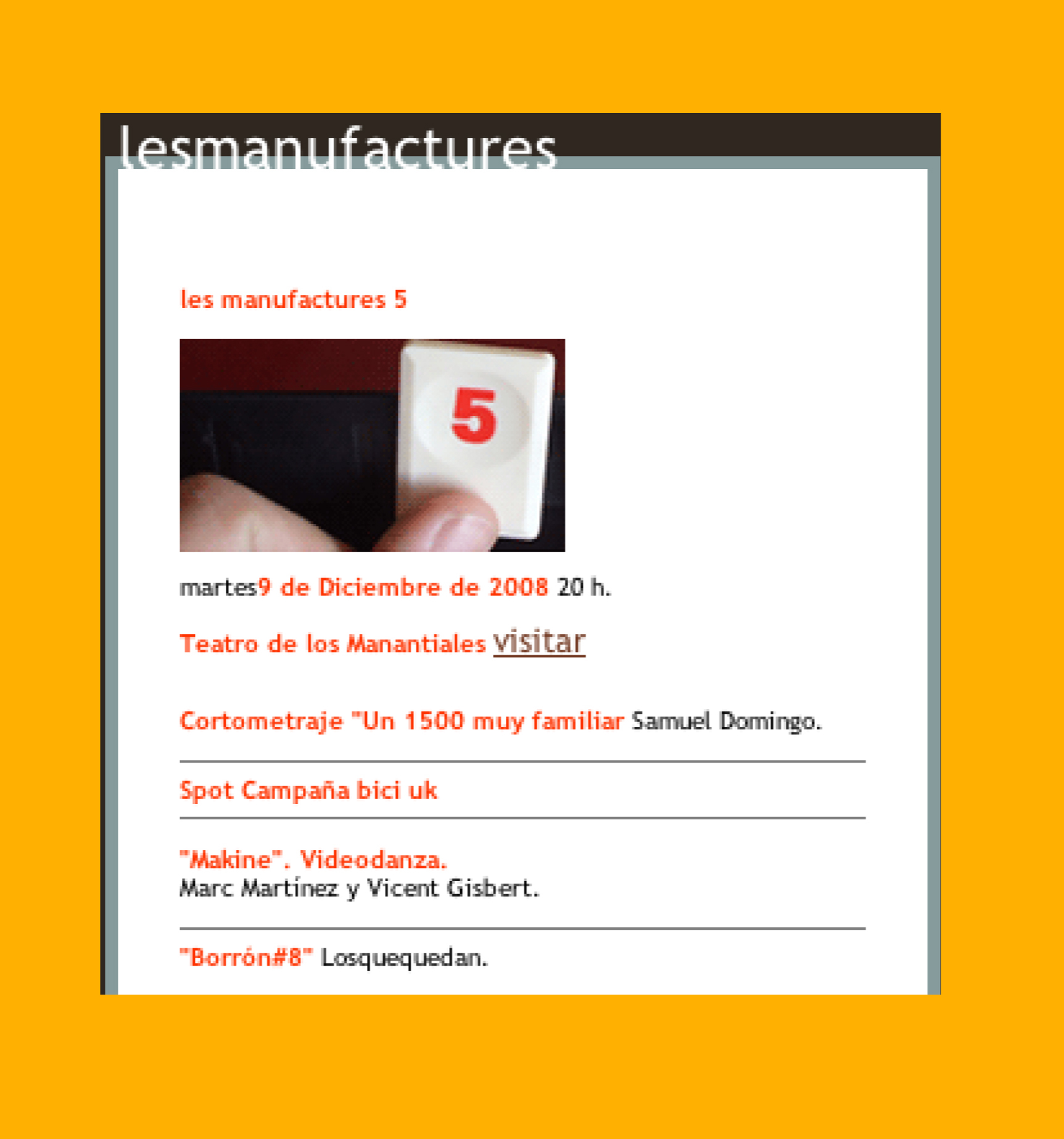 la 5ª edición de les manufactures me parecio muy interesante en todas sus propuestas; y en cuanto a LOSQUEQUEDAN presentaron un trabajo muy original y pase un rato muy, muy divertido. Hoy aun sonrio cuando lo recuerdo.Gracias!