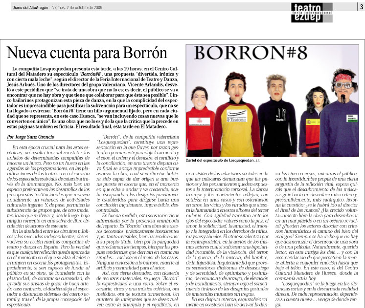 En Huesca fue la primera vez que un diario se enrollaba y nos hacía una crítica el mismo día del espectáculo para que la pudiéramos leer durante el chou.