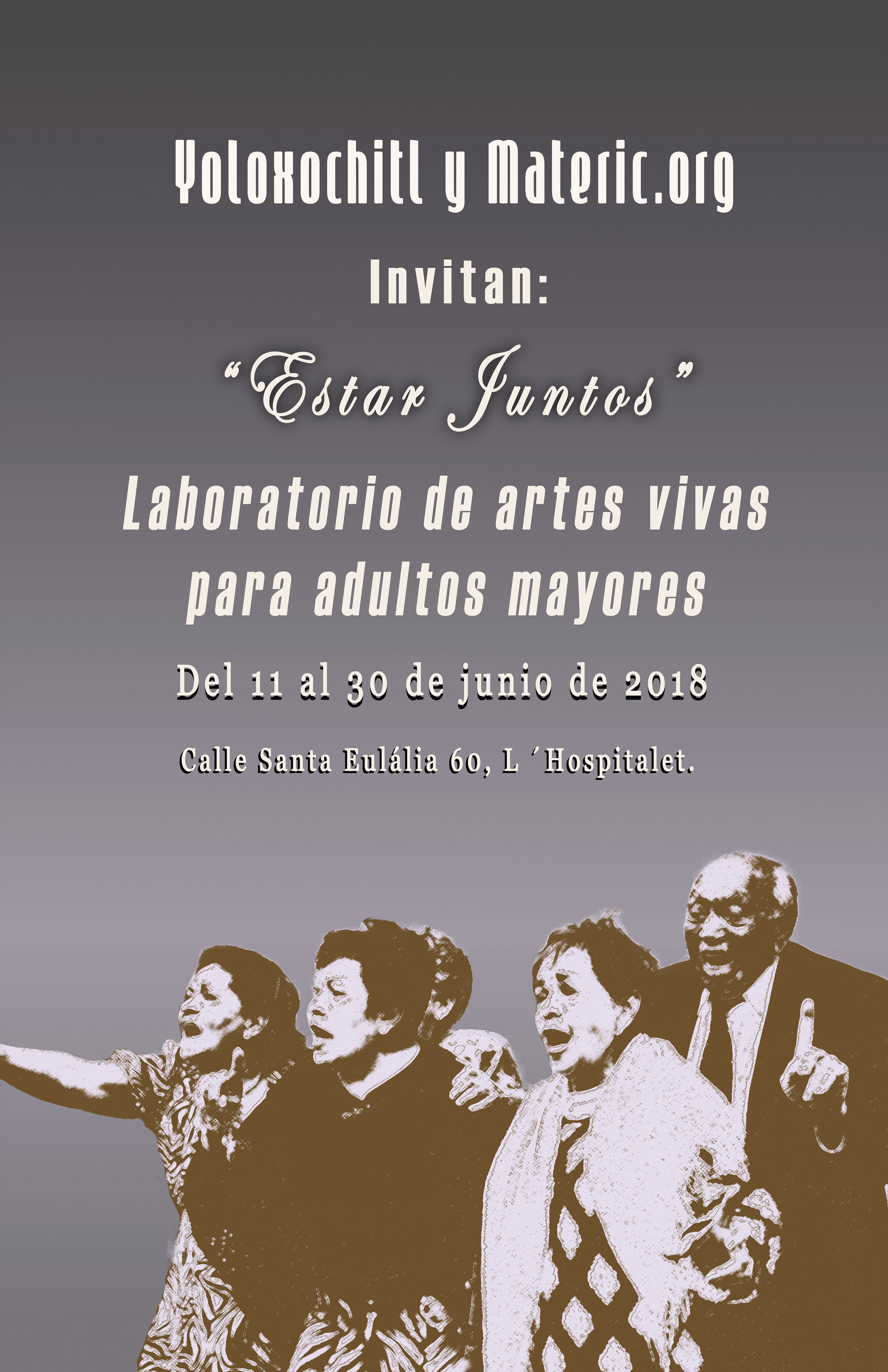 És un taller / laboratori d’arts vives per a gent gran que pren idees, pràctiques i conceptes de l’art relacional, l’art d’acció i l’art sonor per a la planificació d’una intervenció en l’espai públic. Aquest és un espai de trobada i de creació, on podrem explorar la vellesa com un fenomen complex, és a dir, que un no n’hi ha prou amb un bastó per definir-la. Es diu laboratori perquè experimentarem amb nosaltres mateixos. Atrevir-nos a dir fora mida, a cantar l’incantable, a ballar el no ballable, a expressar l’inexpressable. És un exercici per confrontar els valors socials tradicionals i la seva transformació, un moment perquè la vellesa en si mateixa prengui els carrers per fer-se present i exposi el seu punt de vista de manera creativa en aquesta era d’individualisme, consumisme passiu i tecnologies desmesurades. Utilitzarem el cos i la veu com a eines que ens ajudin a construir els nostres propis aparells de comunicació per mostrar-li al món els nostres desitjos, les nostres aspiracions, les nostres preocupacions, que seguim aquí, més vius que mai!