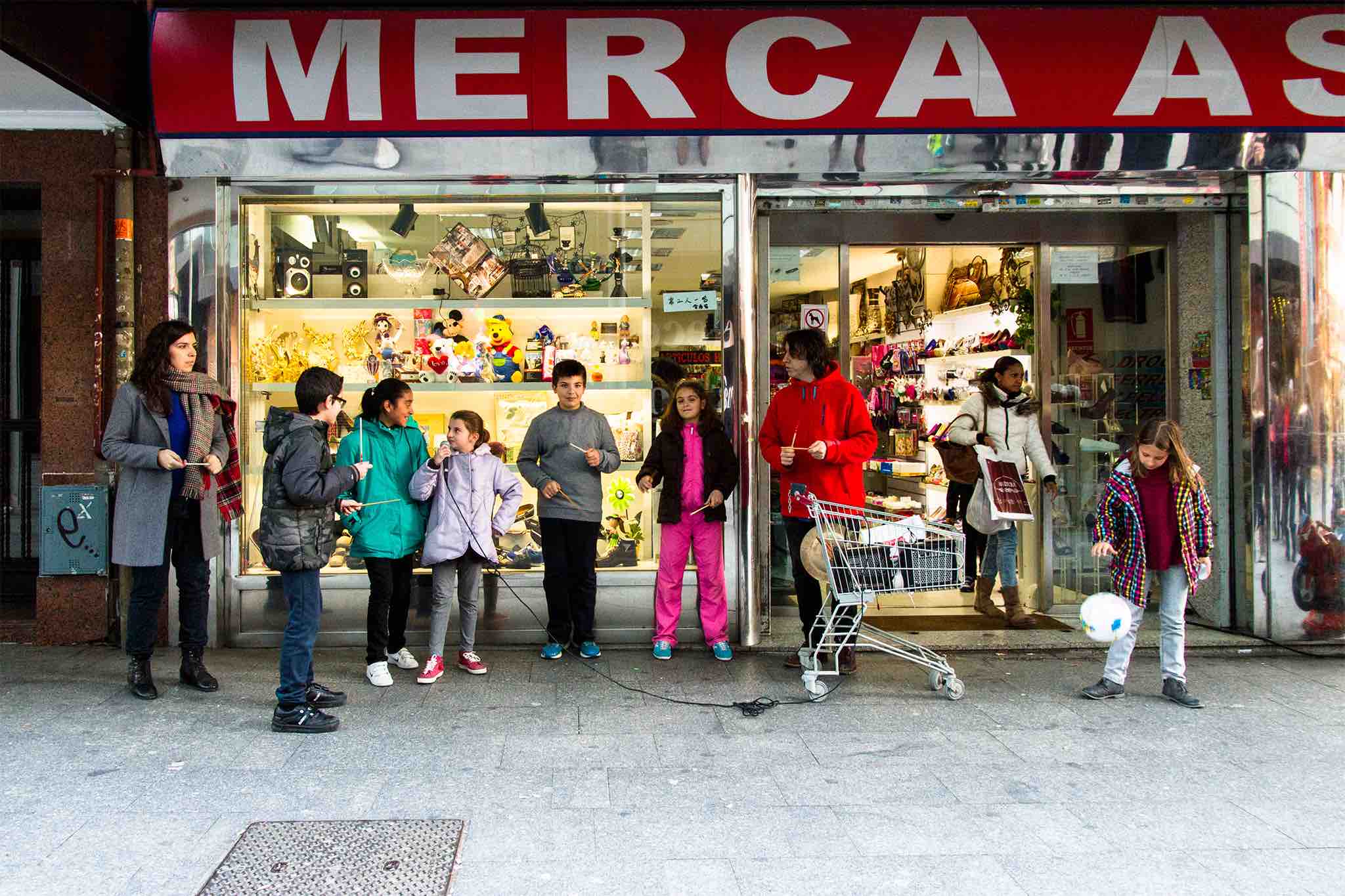 Este año celebraremos el final del curso con una verbena en movimiento. El artista Nilo Gallego y el grupo de niños y niñas del Taller de Teatro Musical han ideado Zart Tat Musik, una ópera paseada. Esta ópera experimental, lúdica e interactiva transcurrirá desde los alrededores del CA2M hasta los diferentes espacios y exposiciones del centro para acabar en la terraza. Contará con la colaboración especial de la artista María Jerez y la poeta María Salgado, que también han realizado talleres con familias durante este curso, y del músico Pelayo Arrizabalaga.
