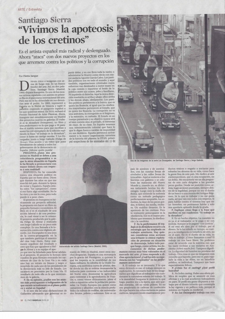 Santiago Sierra – vivimos la apoteosis de los cretinos- ARTE/Entrevista, babelia, el pais