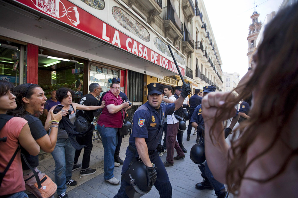 – Cuatro detenidos y ocho policías heridos.
