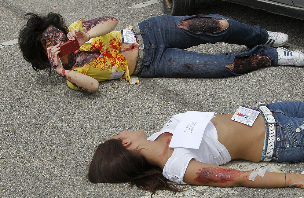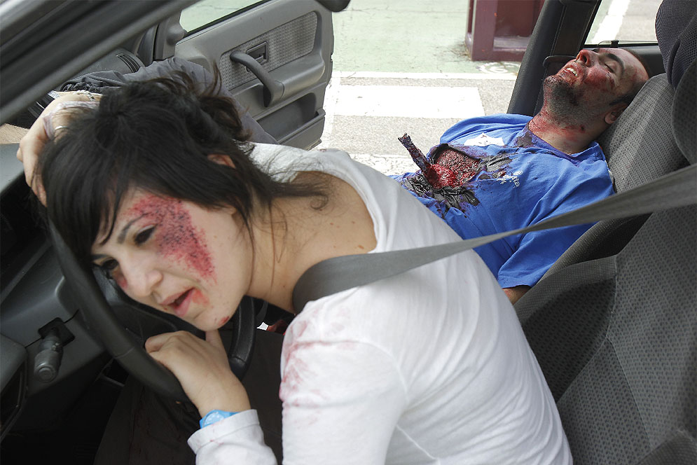 – 240 víctimas y 13 vehículos afectados (de pega).