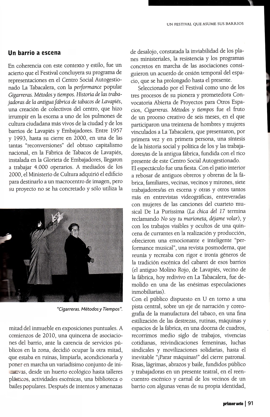 Aquella obrita que dirigí en febrero del 2011 con las cigarreras de Lavapiés en escena y un montón de amigos monopoliza el resumen del Festival Escena Contemporánea sobre ese año. Gracias Pepe.