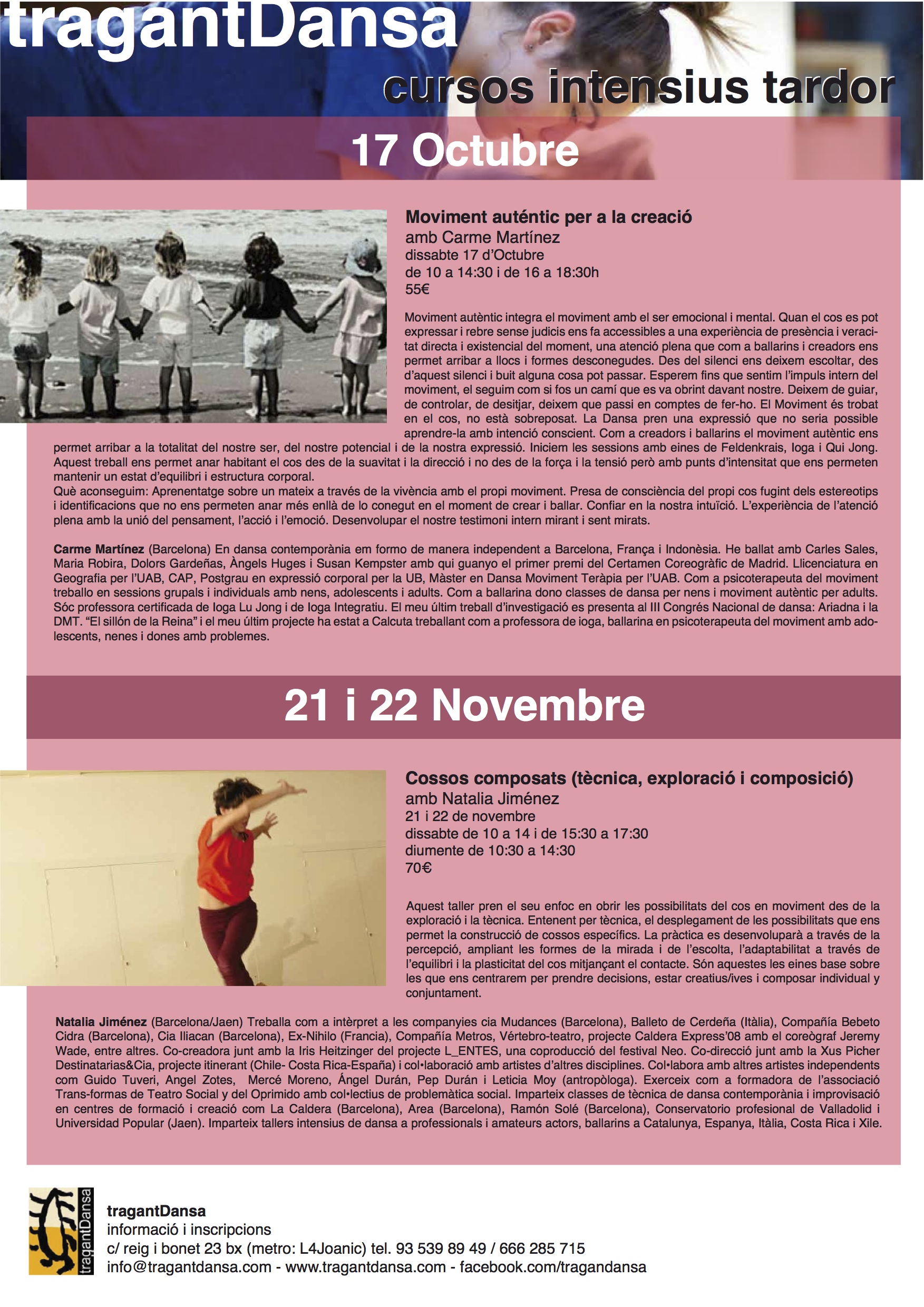 Dissabte 21 i diumenge 22, (11h), 10% descompte alumnes matriculats a tragantDansa i membres APdC.