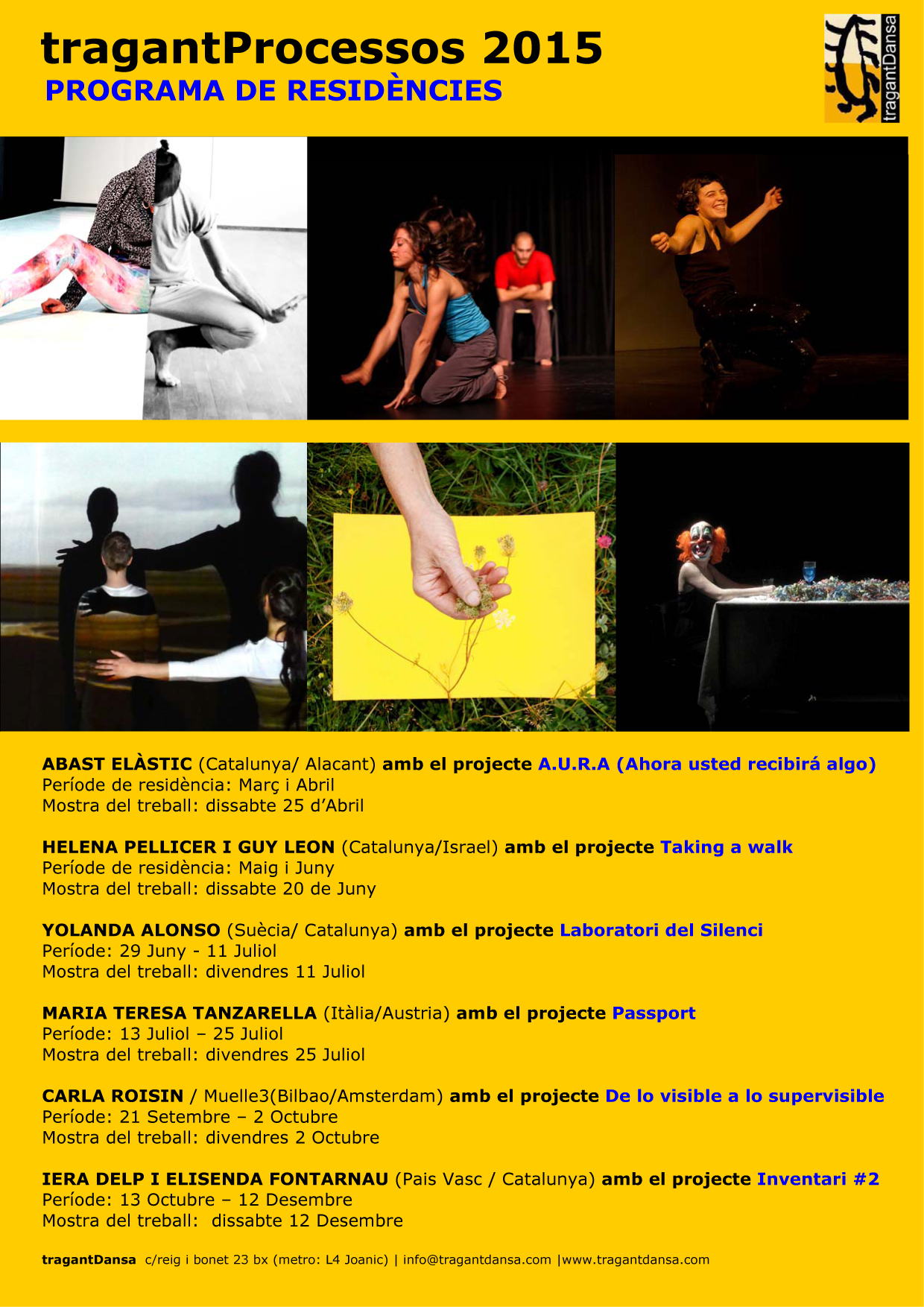 Les diferents propostes s’emmarquen dins les àrees de treball que venim programant a tragantDansa: