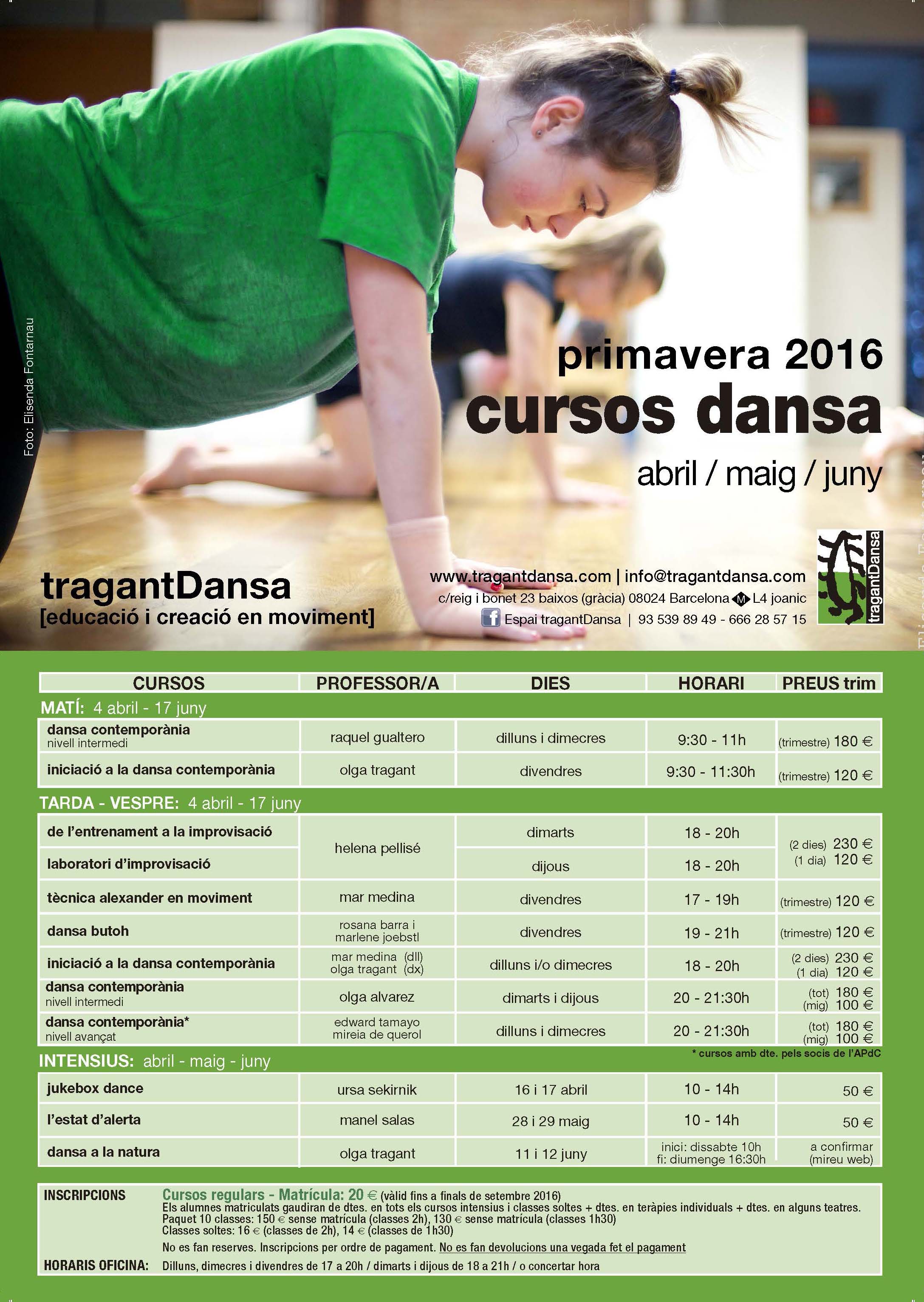 Aquest curs està obert a qualsevol persona interessada en millorar les seves habilitats tècniques i compositives en la pràctica de la improvisació. El treball que proposo inclou un estudi específic sobre l’anatomia i una profunda observació dels processos mentals que hi ha en la base del moviment: des de la percepció del propi cos en moviment fins a les decisions que cada vegada el ballarí està obligat prendre davant la immediatesa del moment present.