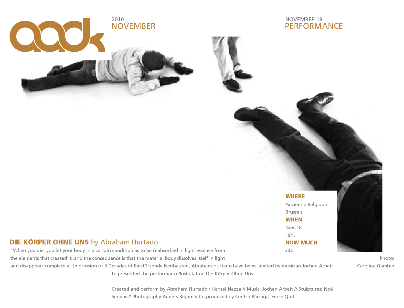 Die Kôrper Ohne Uns de Abraham Hurtado en Paris y Bruselas 17 y 18 noviembre.