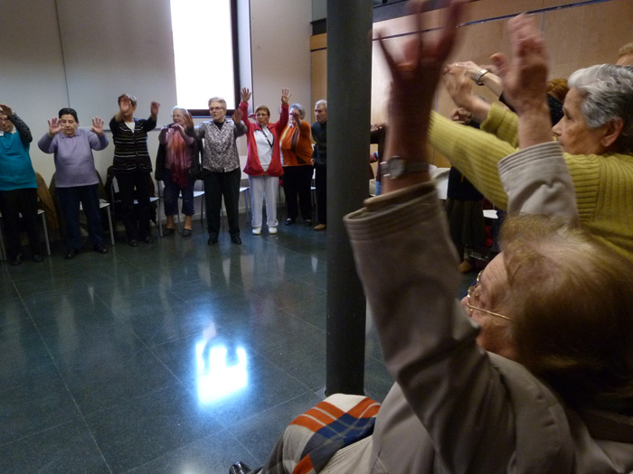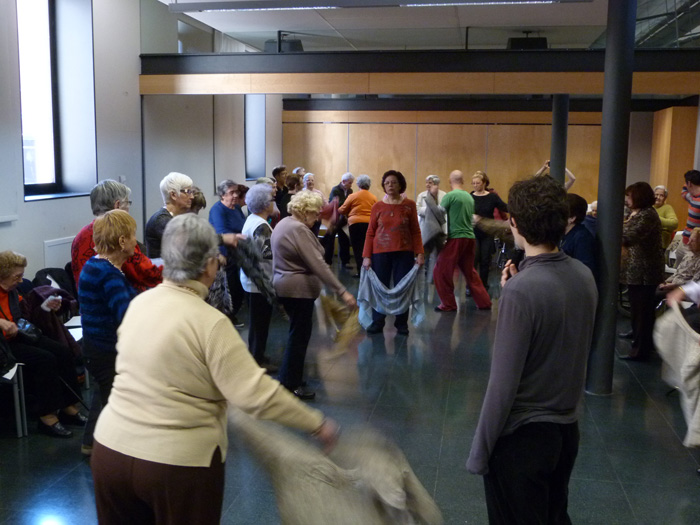 El Taller de Danza y movimiento, del Proyecto Artístico del Antic Teatre, se presenta dentro de las jornadas de la Escuela de la Salud (para gente mayor) que se realizan en el Convent de Sant Agustí.En el espacio, cada semana se presenta una actividad relacionada con hábitos de salud para la gente mayor, y es una buena ocasión para darnos a conocer. Contamos con las participantes habituales del taller y muchas caras nuevas, esperando que algunos/as se animen después de esta pequeña muestra.