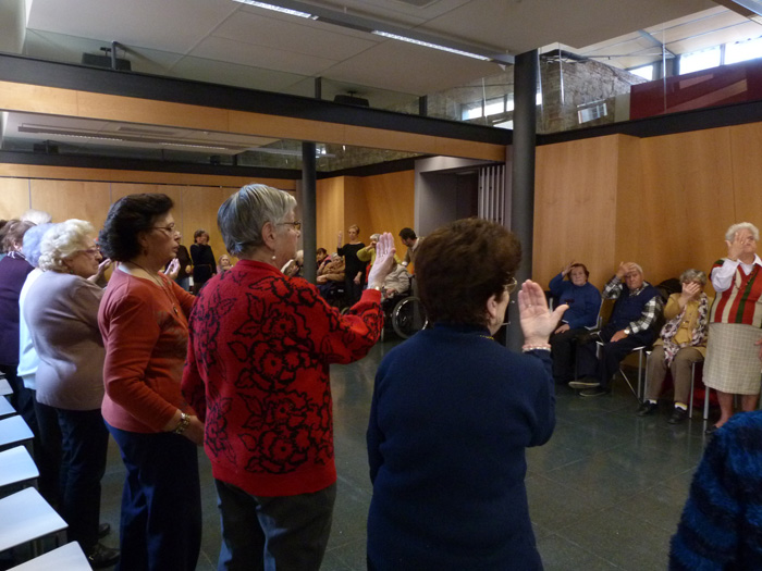 El Taller de Dansa i Moviment, del Projecte Artístic Comunitari de l’Antic Teatre, es presenta dins les jornades de l’Escola de la Salut (per a gent gran) que es realitzen al Convent de Sant Agustí. A l’espai, cada setmana es presenta una activitat relacionada amb hàbits de salut per a la gent gran, i és una molt bona ocasió per donar-nos a conèixer. Comptem amb les participants habituals del taller i moltes cares noves, esperant que potser s’animin després d’aquest tast.