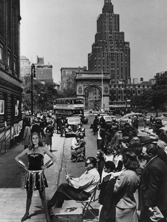 La peça, que porta per títol Greenwich Art Show, és el retrat d’un fotògraf, una dona i una ciutat, explicada a través de les fotografies que el nostre protagonista va fer entre els anys 1942 i 1945. Aquesta peça pretén ser un biopic del fotògraf i una de les dones que casualment posa en diverses de les seves fotografies, suposadament documentals. Aquesta casualitat va desencadenar la possibilitat que el fotògraf de premsa, conegut com un dels pares de la fotografia sincera, fingís retratar la veritat dels carrers, fent-se anomenar a si mateix fotoperiodista quan en realitat són escenificacions amb actors més pròpies de la foto d’autor. Macarena Recuerda Shepherd M’interessa trobar noves estructures narratives, on les seves seqüències fixes possibiliten una lectura diagramàtica. Una lectura que permeti una sèrie de relacions i associacions, ja que de la mateixa manera que les paraules i les frases obtenen el seu significat una vegada que es vincula amb la ment del lector, les imatges consecutives poden obrir una infinitat de possibles lectures. |