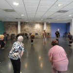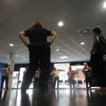 El sol se refleja por la ventana de la sala del Covent de Sant Agustí, y se ve la gente pasando por la calle (no mucha, no es una calle especialmente transitadas, solamente por la gente del barrio) yendo a comprar, a recoger los niños a la escuela… Esta hora y media a menudo resulta un paréntesis necesario en su dia a dia que transcurre plácidamente entre la música, el reflejo de la luz por la ventana y los movimientos de los cuerpos.