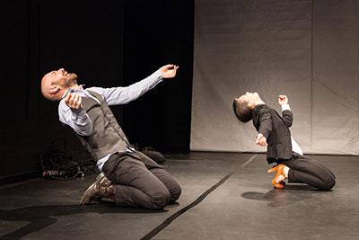 Para este proyecto nos juntamos Arantzazu López Medina y David Franch Farré con la intención de crear una pieza. Juntamos ganas, curiosidad, y aportando cada uno su conocimiento y su experiencia laboral y vital. Viniendo cada uno de distintos lenguajes escénicos, pretendemos y queremos construir algo bajo el título “Osos en el agua”.