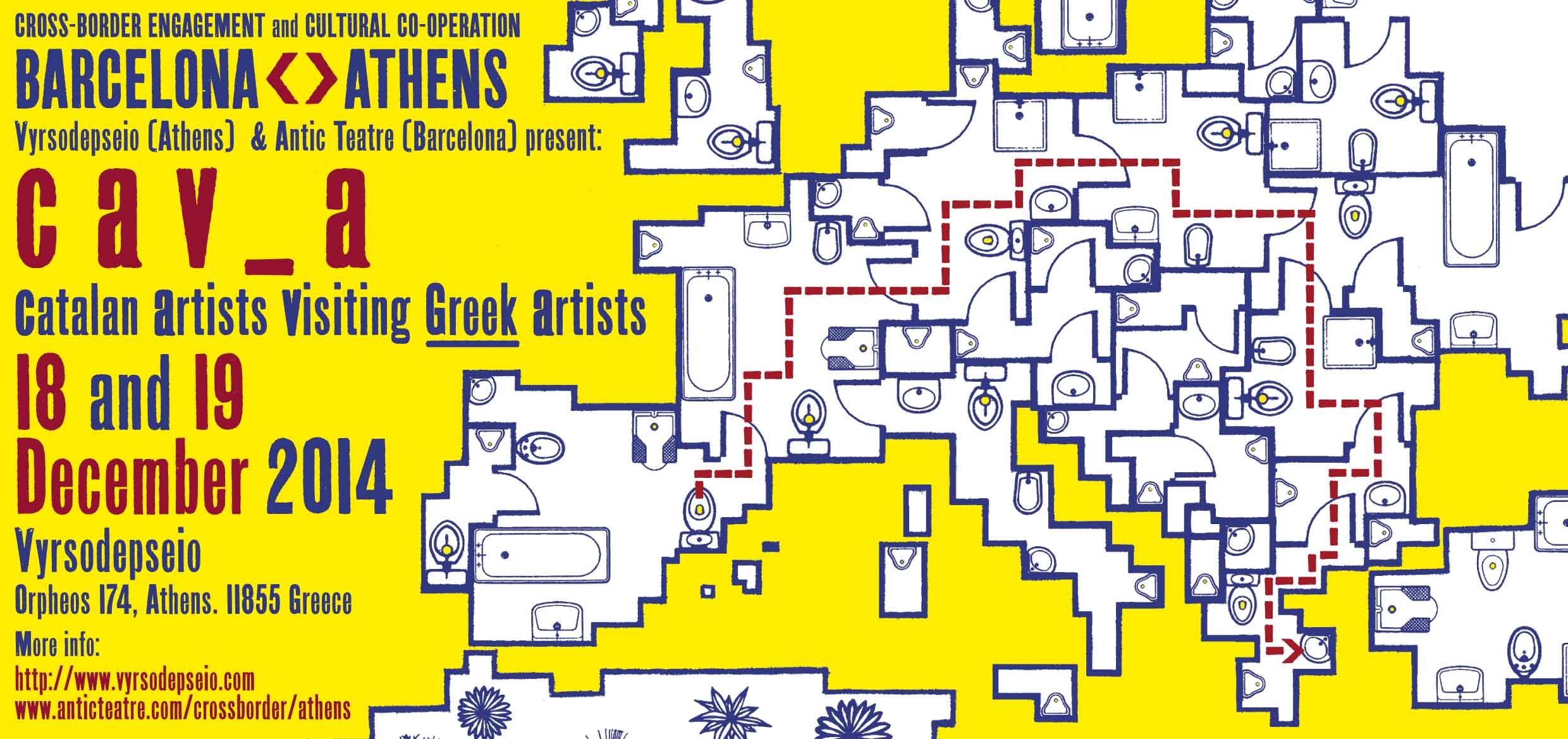Vyrsodepseio, espacio cultural en Atenas dedicado al arte contemporáneo, junto con Antic Teatre, referente de la escena actual de Barcelona, centro de recursos multidisciplinares dedicado a la investigación, la creación, la producción y la difusión de las artes escénicas y visuales, están trabajando conjuntamente dentro del programa cav_a, “Catalan artists visiting Greek artists”. Este programa consistirá en dos actuaciones del artista catalán Pere Faura en Vyrsodepseio y otras actividades, como encuentros con artistas griegos y charlas entre el artista y el público, que tendrán lugar los días 18 y 19 diciembre. La segunda parte del intercambio será al Antiguo Teatro en febrero de 2015.