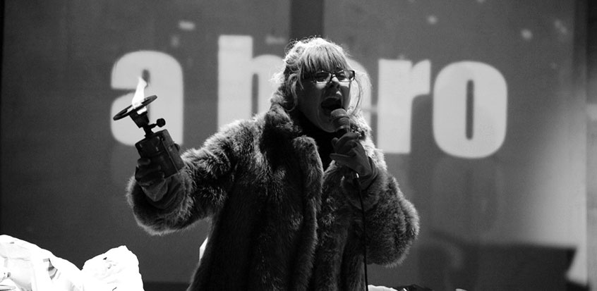 La performance toma forma de concierto combinado con arte visual y perfomático. Los tres artistas se encuentran en el espacio, cambian nuestra noción de humor negro, plantean algunas preguntas y rompen nuestra percepción sobre qué es el arte en relación a la gentrificación.