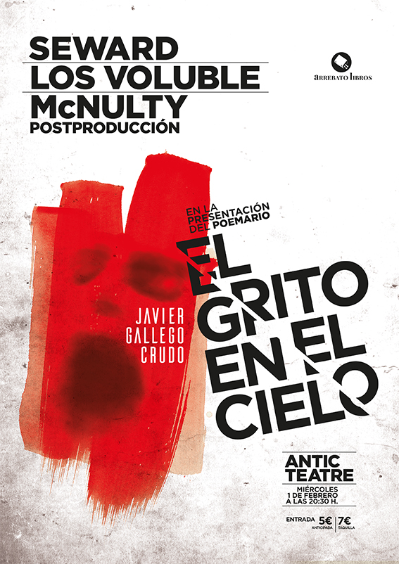 Seward, Los Voluble y Mcnulty Postproducción acompañaran la presentación del nuevo poemario de Javier Gallego Crudo, El Grito En El Cielo. La voz del autor se mezcla en directo con los músicos de Seward y las piezas de videoarte realizadas por el colectivo de experimentación audiovisual y activismo social, Los Voluble y por Mcnulty Postproducción.