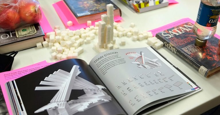 COMIDA es una instalación escénica, sin formalismos ni frontalidad… a primera vista quizás sólo una mesa llena de libros en permanente cambio, donde vamos depositando objetos, acciones y alimentos de manera digresiva y casual.
