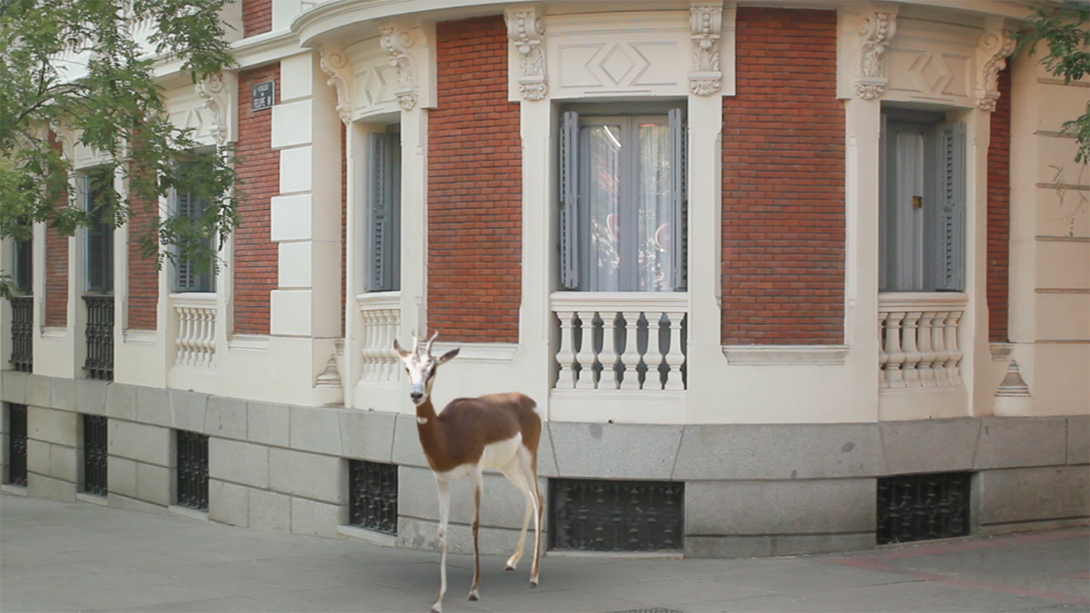 Bestiari 2018_5:10 minBestiari ens mostra una ciutat deserta on tota reminiscència humana és substituïda per la presència d’animals salvatges que es passegen pels carrers buits. Aquesta situació ens provoca un estat d’incertesa que ens fa reflexionar sobre les fronteres entre l’espai urbà i la natura, així com sobre la pervivència futura de la humanitat o la frontera entre els humans i els animals. |