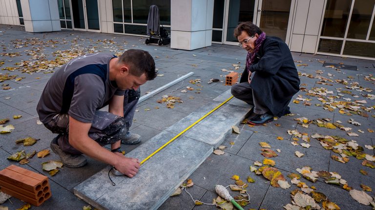 Realizada en el patio de las esculturas del Macba el 10 de noviembre de 2015 con motivo del Día Internacional del Escritor Perseguido, organizado por el PEN Català. El periodista y realizador iraní Ahmad Jalali Farahani fue protagonista del derribo del muro.