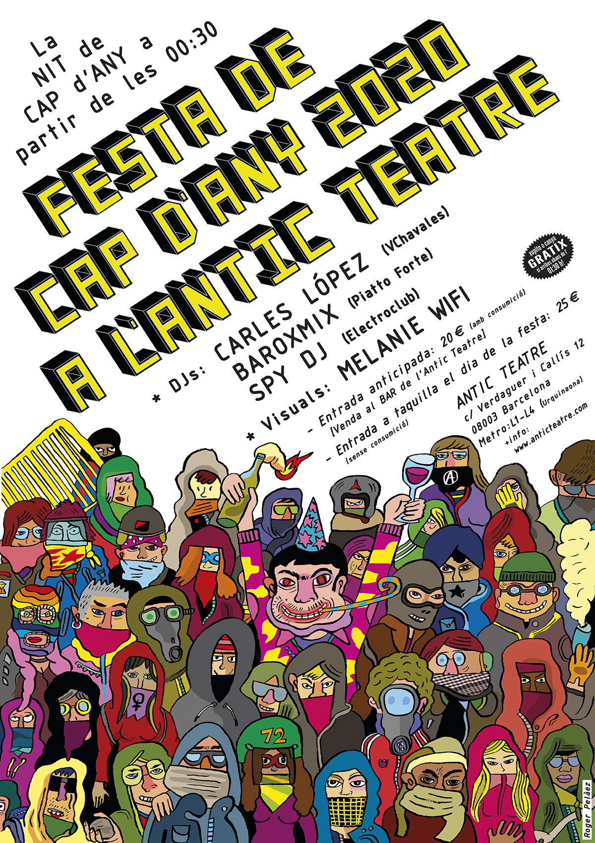 El 31 de diciembre el centro de Barcelona se moverá a ritmo de música electrónica desde Antic Teatre, de la mano de los Djs Carles López (VChavales), Dj Baroxmix (Piatto Forte), Spy Dj (Electroclub) y acompañados por las visual sessions de Melanie Wifi. Se trata de la 15a edición de esta ya mítica fiesta de Fin de Año en la ciudad.