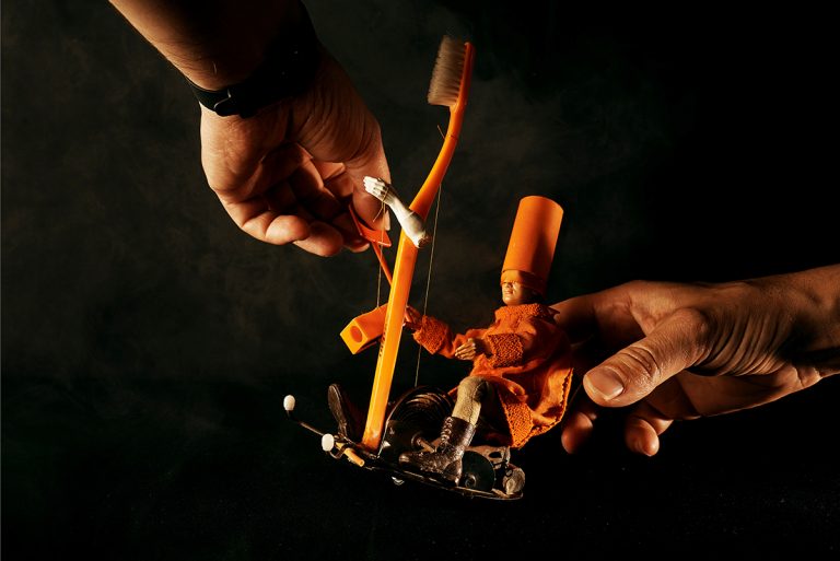Un baúl, un universo, un plató de cine, una obra cinematográfica: una cámara capta imágenes en un plano fijo y las proyecta en una pantalla. Un camión, un hilo… estirar y hacer volar cosas por el plano fijo, cosas ínfimas con gran plasticidad. Una película de animación poética, «cocinada» con imágenes en directo.