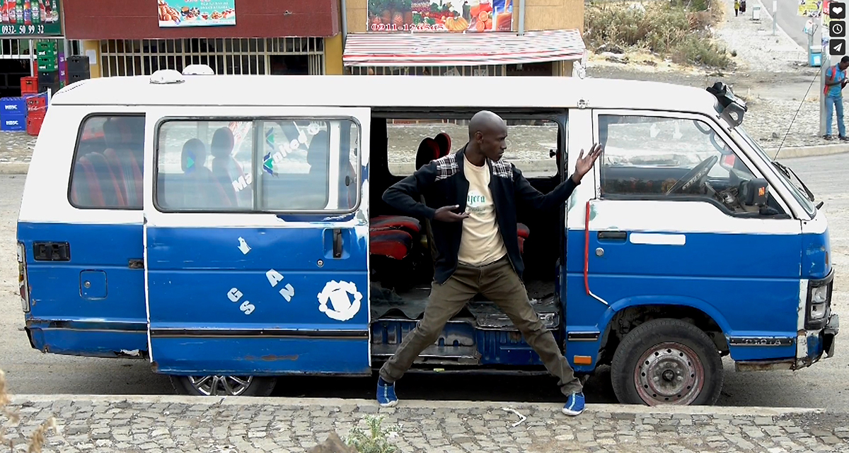 Proyecto de videodanza e investigación antropológica. El bailarín reproduce y organiza en una coreografía todos los gestos de las personas que utilizan los taxis colectivos en Addis Abeba. Forma parte de un proyecto de danza –»Dancing the Land»– realizado en Addis Abeba (febrero de 2017)