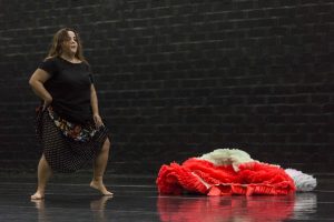 El sábado pasado se cerró el festival SUR con DEBUT, de la artista gaditana (de San Fernando) Rosa Romero. Su segunda pieza, de 2021, que domina a la perfección. Una propuesta sencilla y contundente, muy bien construida. Yo había visto la obra hace algunos meses en un teatro grande. Agradecí verla en el espacio más íntimo de Box Levante, con un público más contenido por menos numeroso. Porque la pieza tiene momentos en que es imposible contener la risa. Brota. Pero un exceso de respuesta puede banalizar la propuesta, que aunque con grandes dosis de humor, no es para nada superficial. Rosa está mostrando su universo, su modo o su porqué de estar en la escena y hay mucha exposición y cierta vulnerabilidad en todo ello. Y Rosa tiene el don del humor. Genera empatía desde el primer instante, y te vas con ella, la acompañas en su paseo, te haces cómplice.