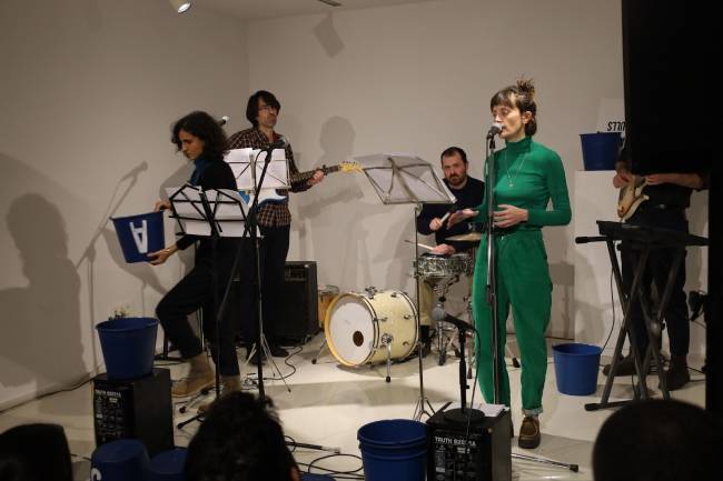 De nuevo aparecen las capas, esta vez: los músicos que las acompañan, la palabra poética encarnada en esas dos voces femeninas que no son amables, y el propio tono de esas voces, su textura, no su significado. Y todo eso se entrelaza y tiene algo de primaveral, de festivo. Como si estuviera soplando un suave viento mientras los personajes hablan en una peli de Rohmer y, a la vez, estuviera presente algo estridente y ajeno a la escena que se empeñara en persistir.