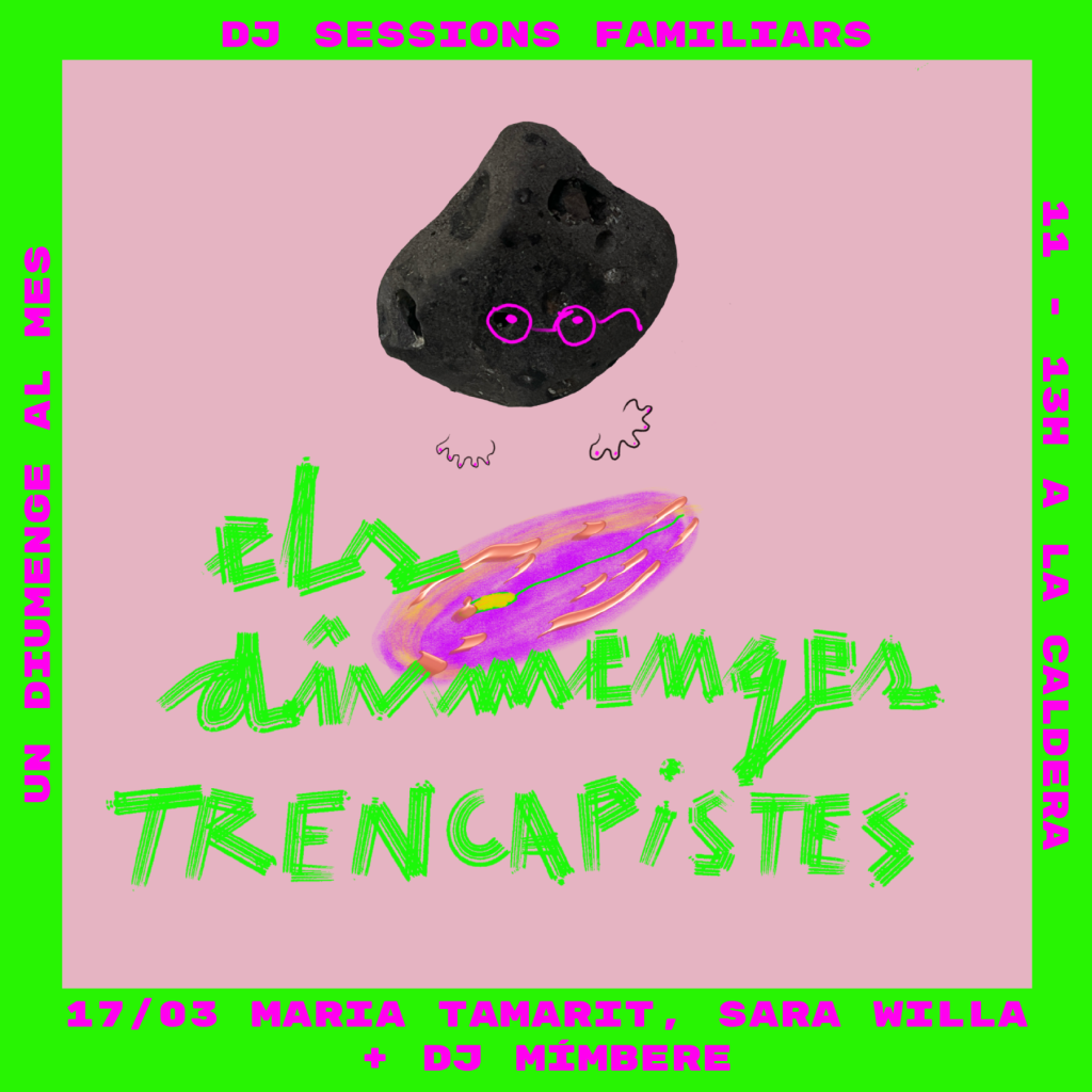Una sesión frutal de danza y música electrónica en familia, de dos horas, con una primera parte de movimiento guiado por una artista, en esta ocasión hemos invitado a las residentes Maria Tamarit y Sara Will, y una segunda parte con DJ mímbere para movernos juntas y hacer una buena sacudida al domingo.