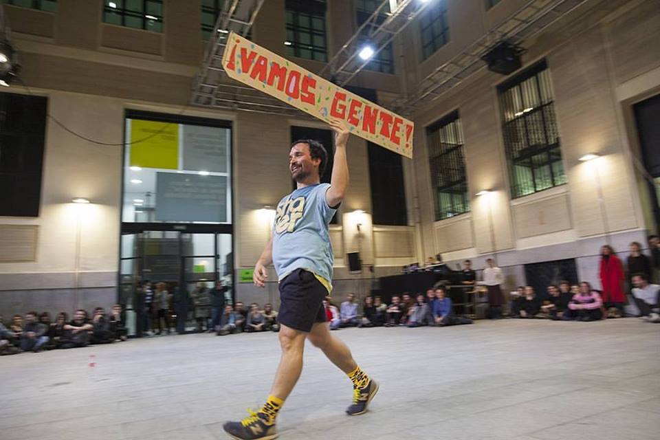 Quim sigue bailando, sonriendo, corriendo… su energía va impregnando todo el espacio. En un momento, abandona la sala; la gente se mira y los técnicos de sonido nos piden que hagamos un pasillo. Al rato Quim Bigas aparece, recorre el pasillo extasiado como el corredor de una maratón que encara el último kilómetro de la carrera y la única fuerza que le queda es la de los gritos de ánimo del público. Los espectadores lo entienden y se vuelcan con el deportista. Con los cuerpos más juntos, con Quim saltando, jadeando, el público cede y se deja afectar. Nos olvidamos de que todo era una crítica y en ese mismo momento nos encontramos todos frente a frente. Dándonos cuenta de que esa es nuestra canción. La gente salta, ríe, se deja afectar y cantamos Al Bano y Romina abrazados.
