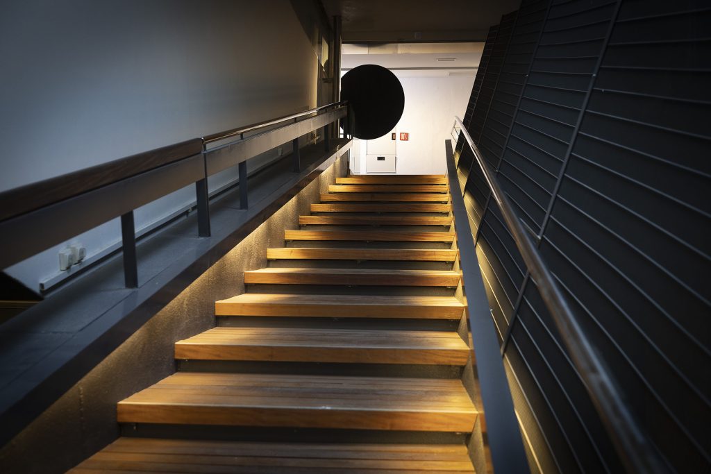 Santa Mònica se ubica en La Rambla de Barcelona, en un antiguo convento, después cuartel e iglesia del barrio, que tras la reforma proyectada por los arquitectos Albert Viaplana y Helio Piñón se convirtió en centro de arte. Desde que Enric Puig Punyet dirige la institución, hemos visto propuestas espaciales muy diversas en cada exposición, siempre en negociación con la arquitectura del espacio. Para Sense esquerda no hi ha punt de llum habéis contado con el diseño expositivo del artista Víctor Ruiz Colomer. ¿Cómo es la propuesta espacial de esta exposición?