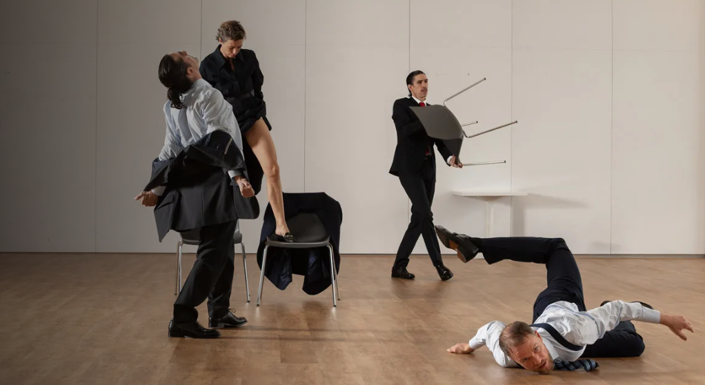 Manuel Rodríguez: La pieza está contextualizada en unos lugares institucionales, de congreso, de estructuras de poder, y yo creo que todos los que estamos ahí, concretamente en esta pieza, nos cuestionamos mucho eso, el tema del poder. Porque en el sector, que se instrumentaliza y que uno se siente instrumentalizado, para tener ese acceso al trabajo, a esos recursos, a esos bienes, pues tienes que pasar por ahí, por ese aro, y al final vas a tener que pringar, vas a tener que enfrentarte a eso, ya no sé si situarlo tanto como a una cuestión de discurso, como a una cuestión de palabras, ¿sabes?, de poner en palabras algo, sino de cómo operamos dentro de este juego, porque al final es una cuestión de escala, lo que sucede en un estudio y sus propias políticas, sucede a gran escala también, al final es un reflejo. Se puede llamar fricción, conflicto, que está obviamente muy incorporado en el sector artístico, pero se puede extrapolar a todo sector.