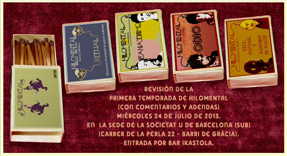 Miércoles 24 de Julio, en el local de la Sociedad U  (Carrer de la Perla, 22 – 24,  Gràcia, Barcelona),  Sesión Antológica de la 1a Temporada de HILOMENTAL