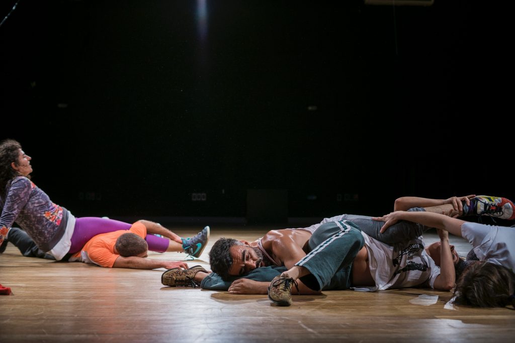 La pieza expone cuerpos movilizados por un incesante gesto que se repite hasta el agotamiento. Son cuerpos invadidos por un deseo irrefrenable y vacío. A veces llano, a veces a sobresaltos, pero en general sin que pase mucho, casi nada. Del control al vacío, de la propiedad al silencio, de lo tembloroso a lo que sudando muere.