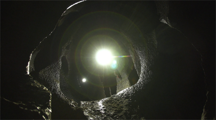 Un grupo de espeleólogos se adentra en una cueva llamada Ojo Guareña. Los límites del espacio aparecen difusos y las voces de los humanos nos llegan como una reverberación de origen incierto. Al final, no sabemos muy bien si somos nosotros los que miramos la cueva o si por el contrario, es la cueva la que nos está mirando.