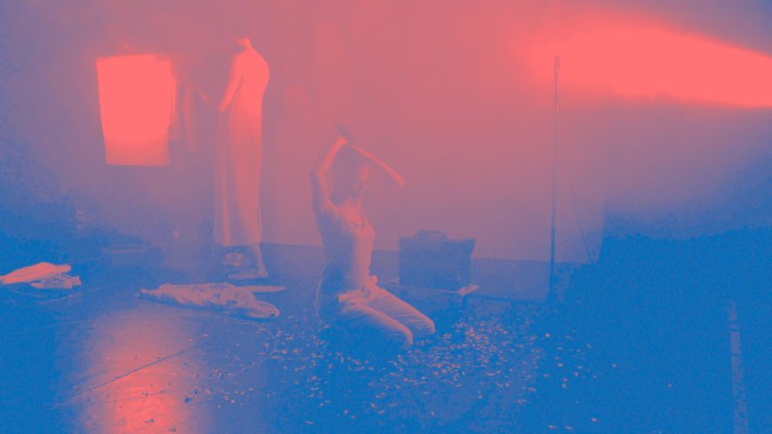 El tiempo de exposición en fotografía sirve aquí como metáfora de un juego absurdo y a la vez peligroso, mortal, como si se tratara del juego de la ruleta rusa. El dúo de performers, ella y él, se convierten en técnicos de un laboratorio fotográfico del presente. La pregunta es: ¿Y si estos procedimientos técnicos fueran capaces de enseñarnos más allá de lo que se muestra a simple vista?