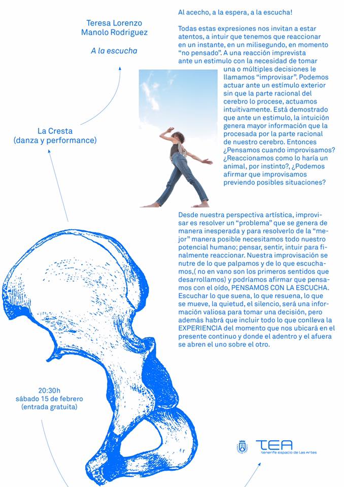 La Cresta es un programa en torno a nuevos lenguajes de creación escénica contemporánea. El programa está diseñado para que artistas locales y nacionales puedan dialogar desde sus prácticas artísticas con el espacio museístico y el territorio. Desde TEA Tenerife Espacio de las Artes se abre un nuevo espacio para la exhibición, la creación y el pensamiento con una programación regular para el público en general.
